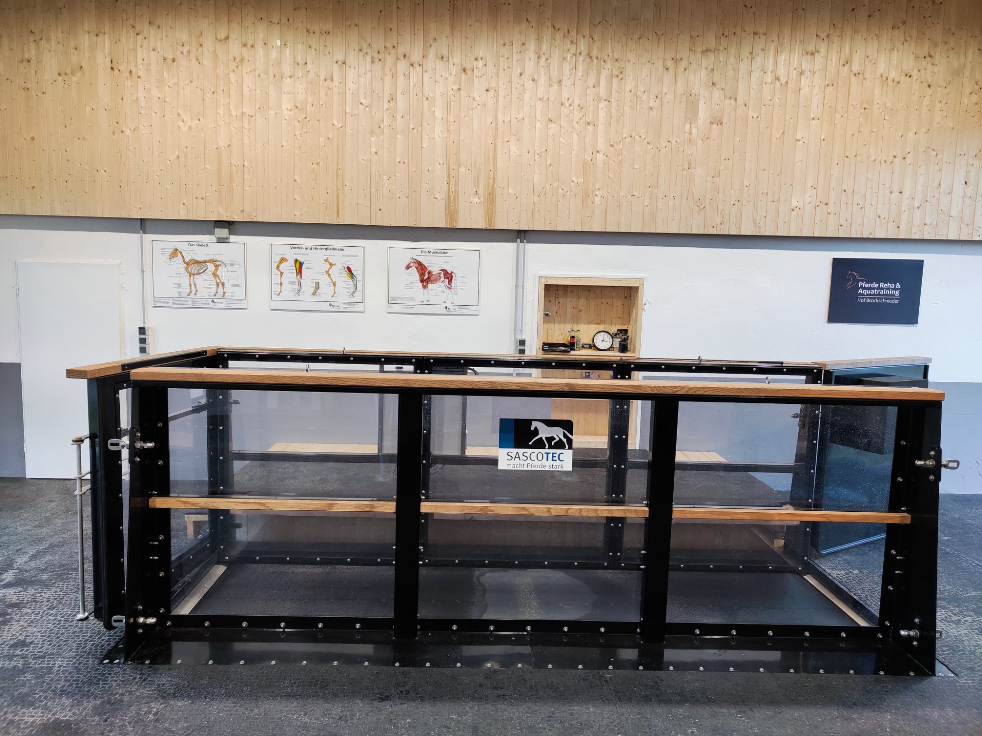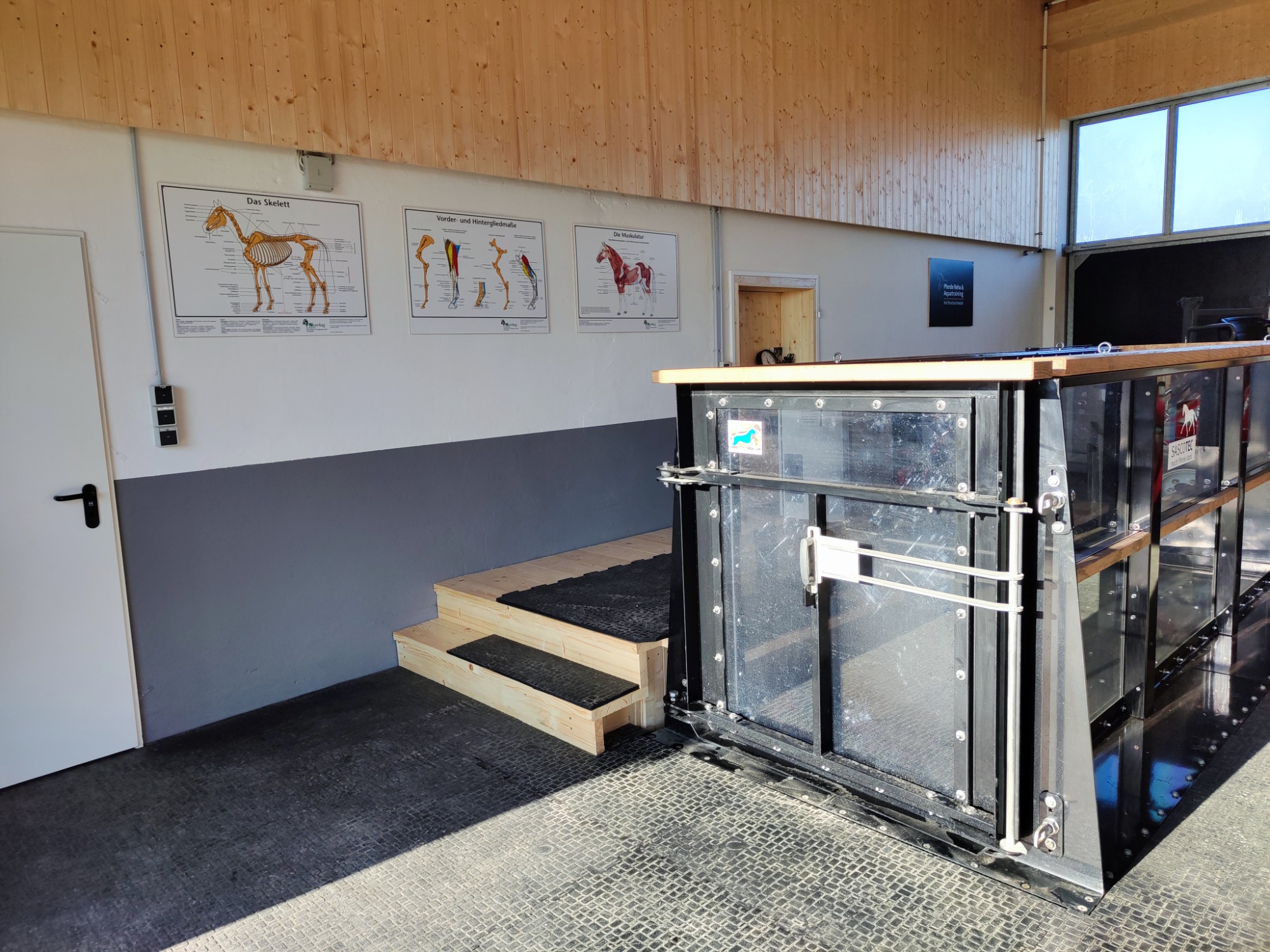 In unserem separaten Aquatrainer-Raum herrscht eine ruhige, stressfreie Atmosphäre. Wir nehmen uns Zeit für eine individuelle Betreuung, abgestimmt auf die Bedürfnisse von Pferd und Besitzer. Während Ihr Pferd trainiert, können Sie bei einer Tasse Kaffee entspannt zusehen.