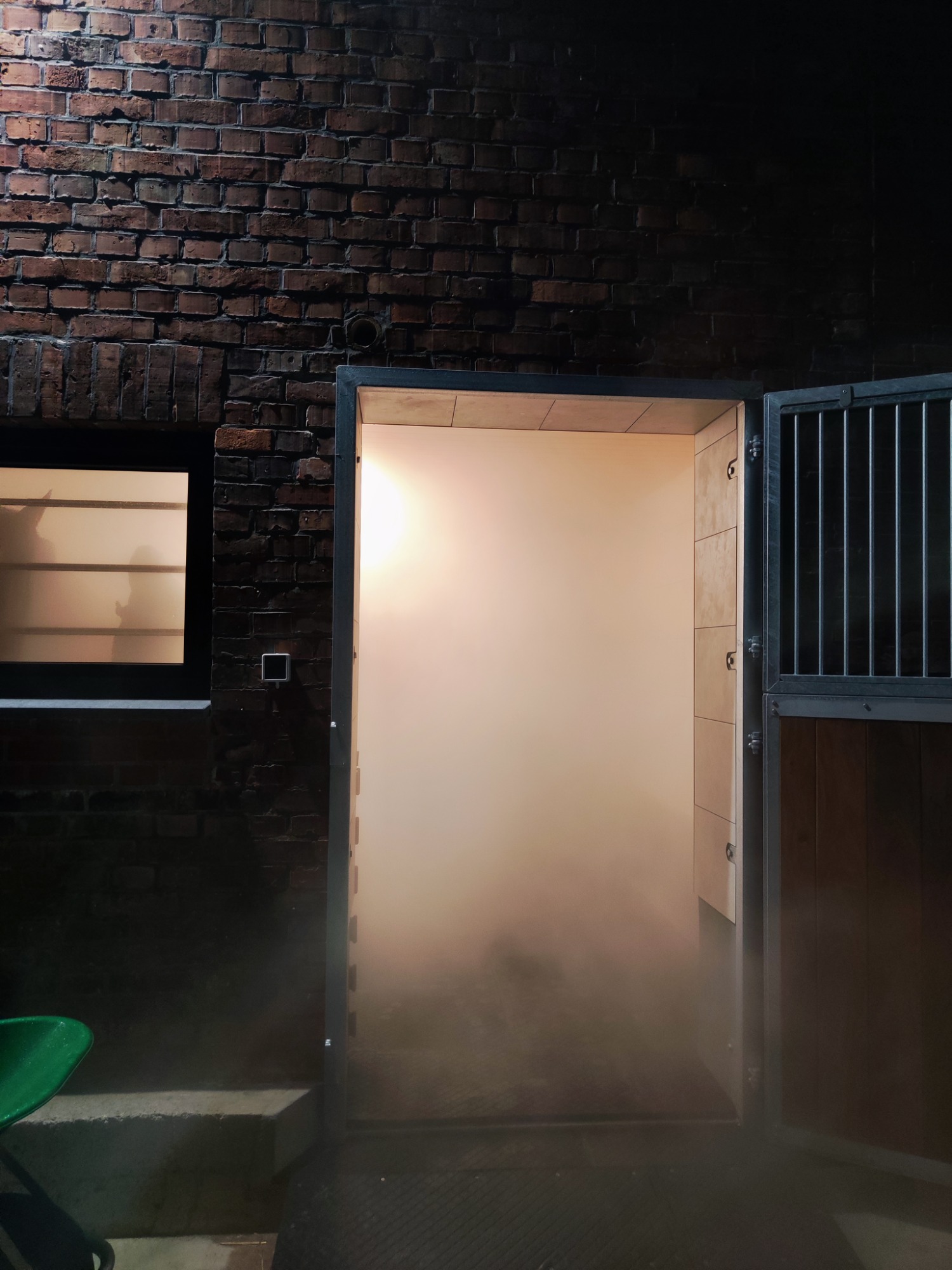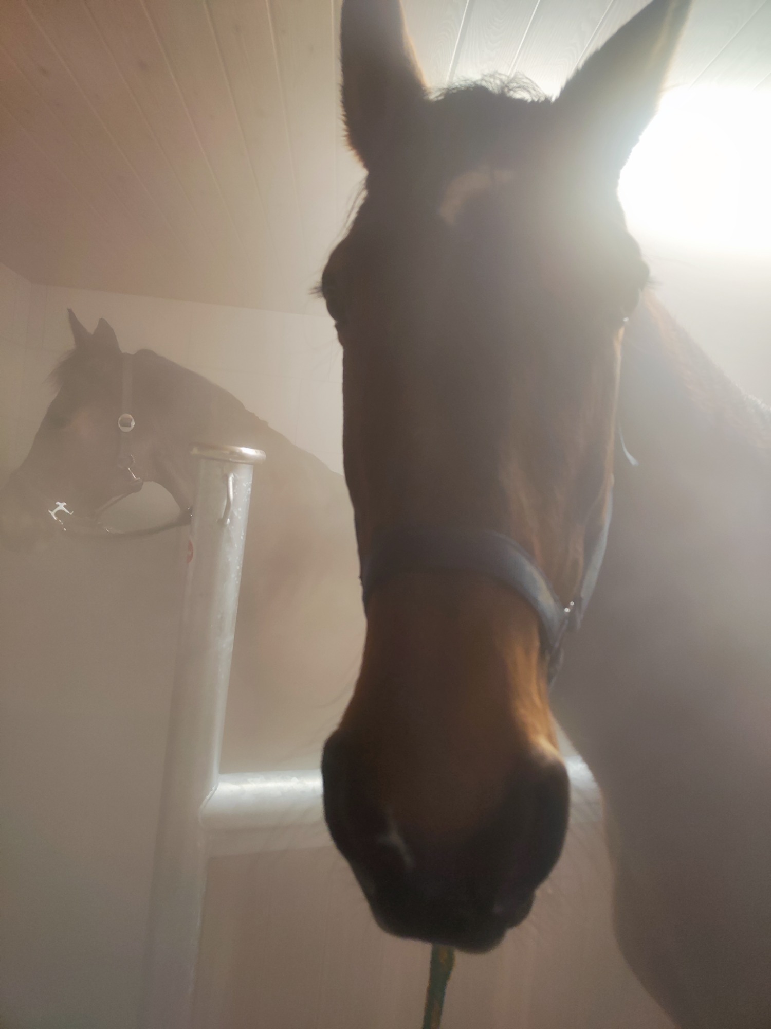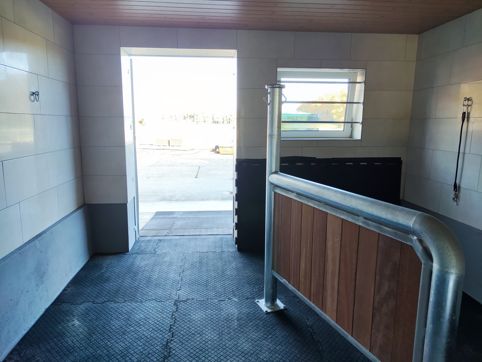 Unsere Solekammer ist ein geschlossener, komplett gefliester Raum, in dem feinster Salz-Aerosol-Nebel aus hochwertiger Solelösung in die Luft gebracht wird. Ihr Pferd atmet diesen sanften Nebel ein – die winzigen Salzpartikel gelangen tief in die Atemwege und können dort ihre wohltuende Wirkung entfalten.